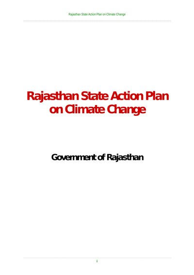 Framework, governance, missions, and implementation details for Rajasthan's climate action plan